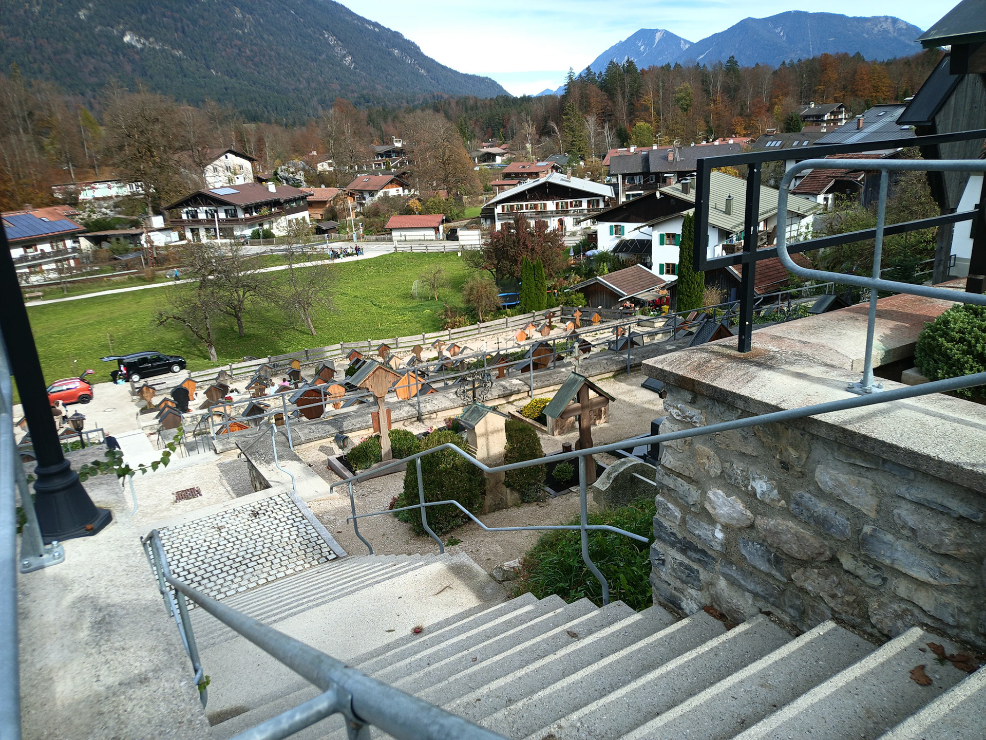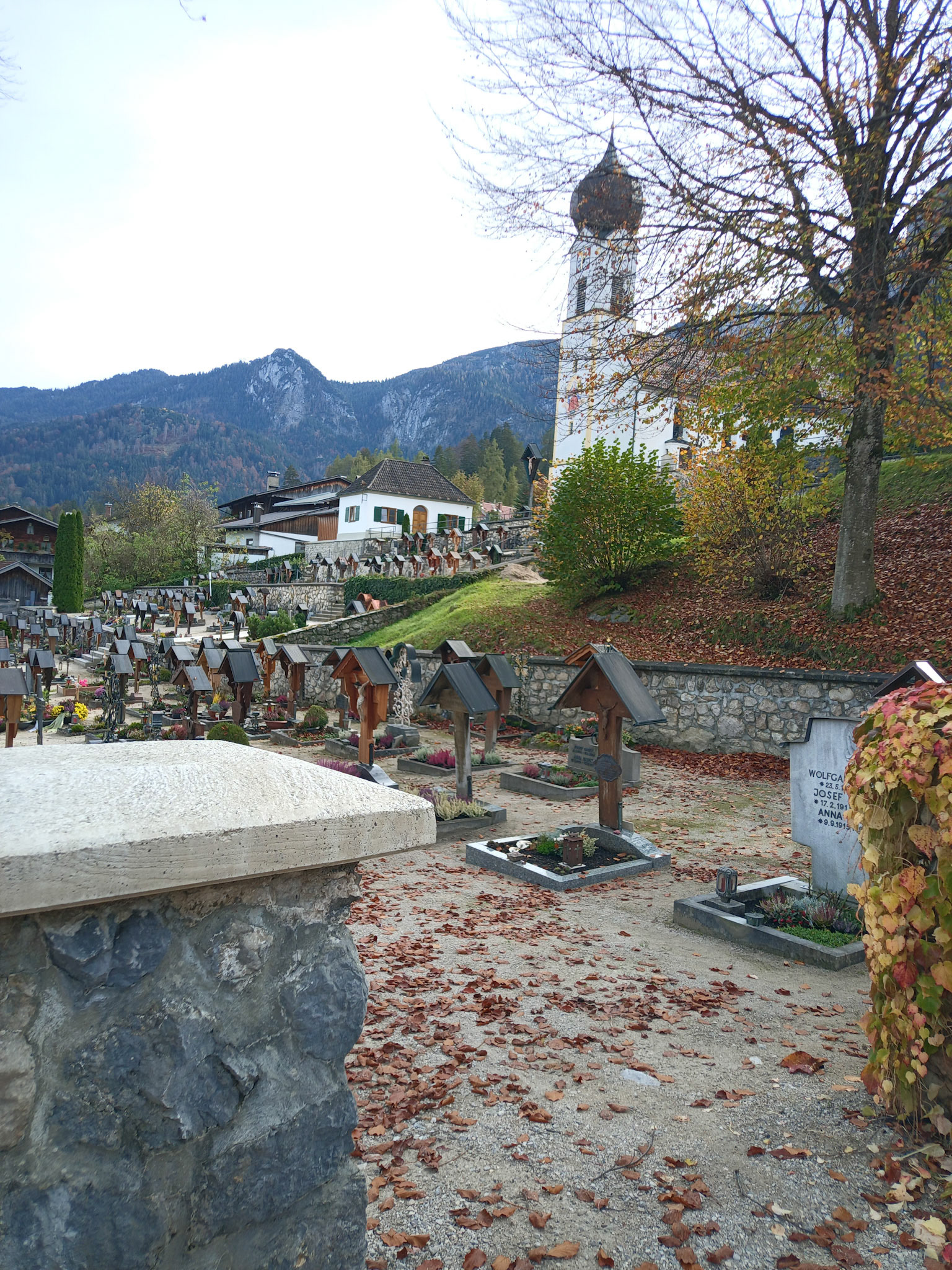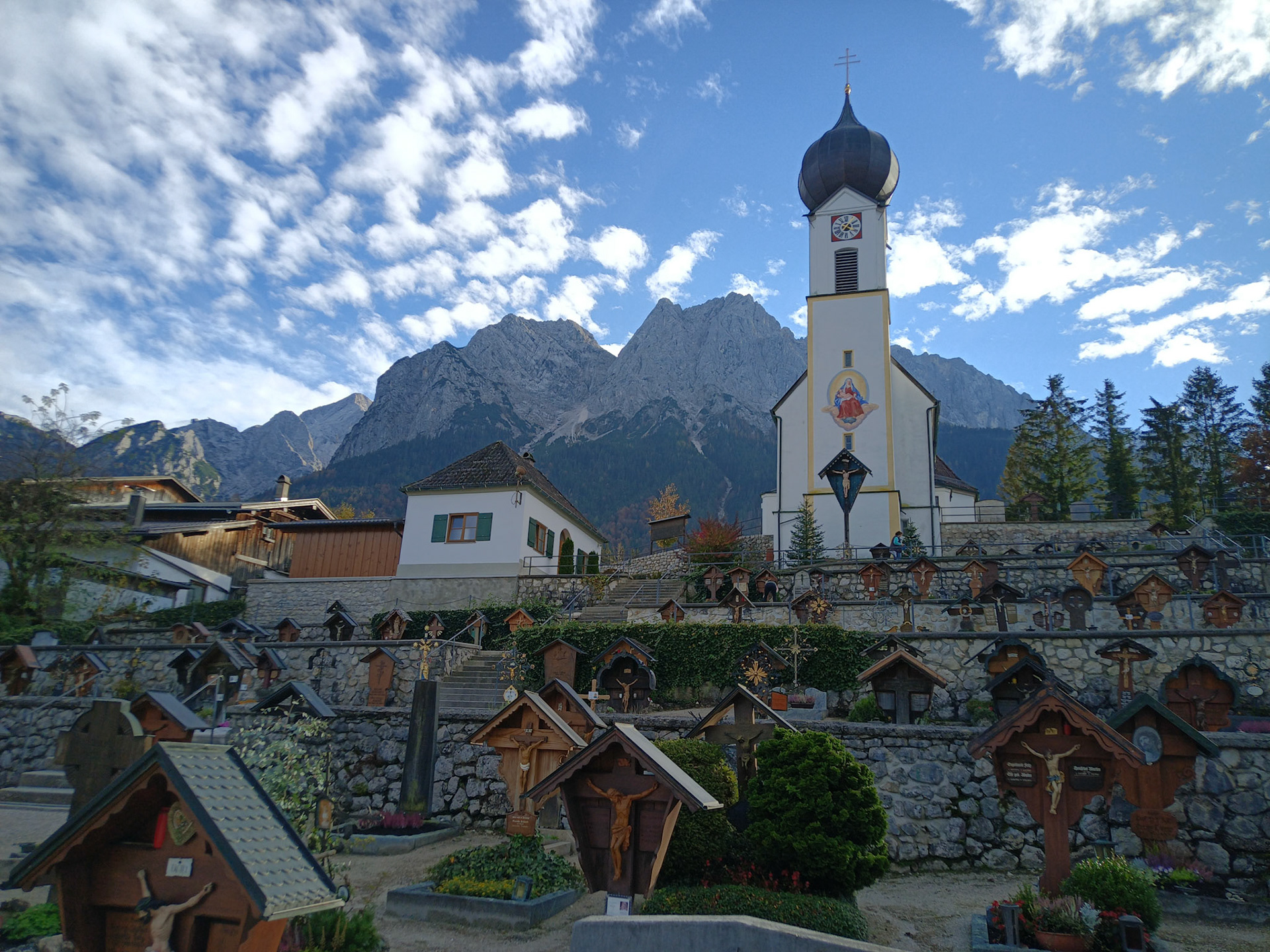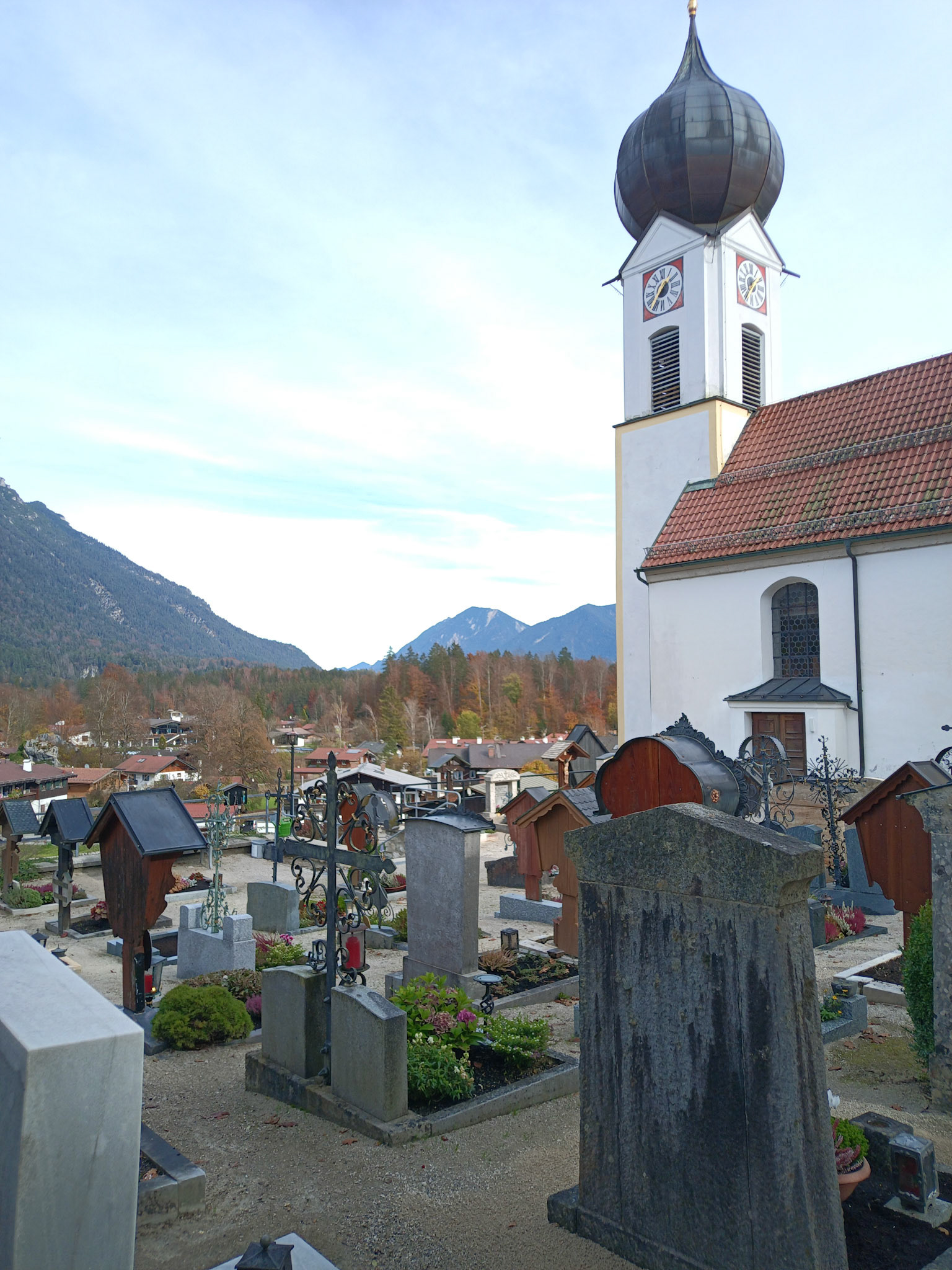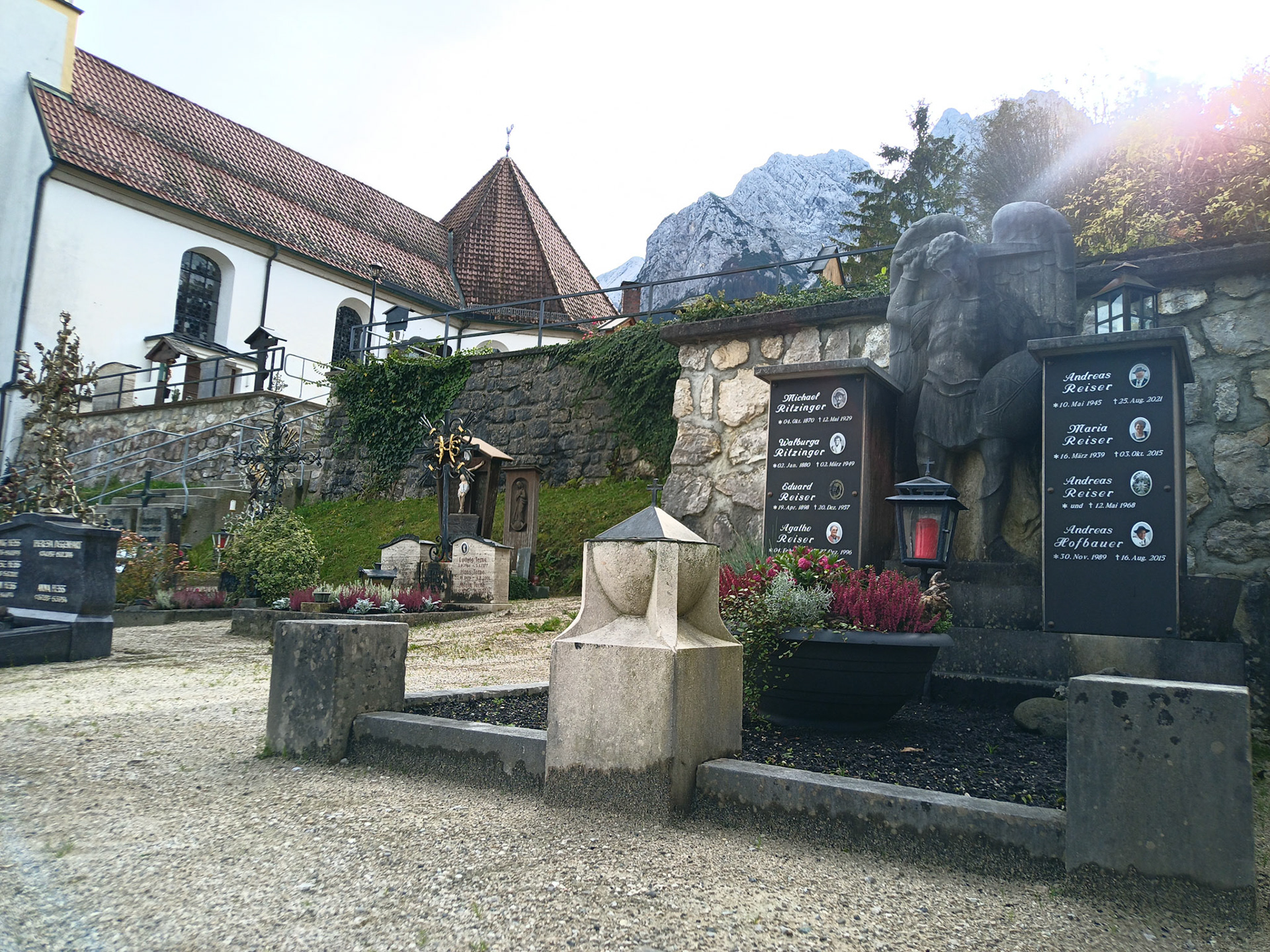 Der Friedhof in Grainau, einem malerischen Ort nahe Garmisch-Partenkirchen, ist ein ruhiger und besinnlicher Ort, der sich harmonisch in die alpine Landschaft einfügt. Er wurde im Jahr 1900 eingeweiht und erstreckt sich über eine Fläche von etwa 1,5 Hektar. Besonders bemerkenswert sind die liebevoll gestalteten Grabstätten, die oft mit traditionellen bayerischen Elementen verziert sind, sowie die beeindruckenden Ausblicke auf die umliegenden Berge, darunter die Zugspitze. Der Friedhof beherbergt zahlreiche Gräber von Einheimischen und Persönlichkeiten, die eng mit der Region verbunden sind. Eine Besonderheit ist die kleine Kapelle, die den Verstorbenen gewidmet ist und regelmäßig für Andachten genutzt wird. Die ruhige Atmosphäre und die gepflegten Grünflächen laden Besucher dazu ein, innezuhalten und die Schönheit der Natur zu genießen.