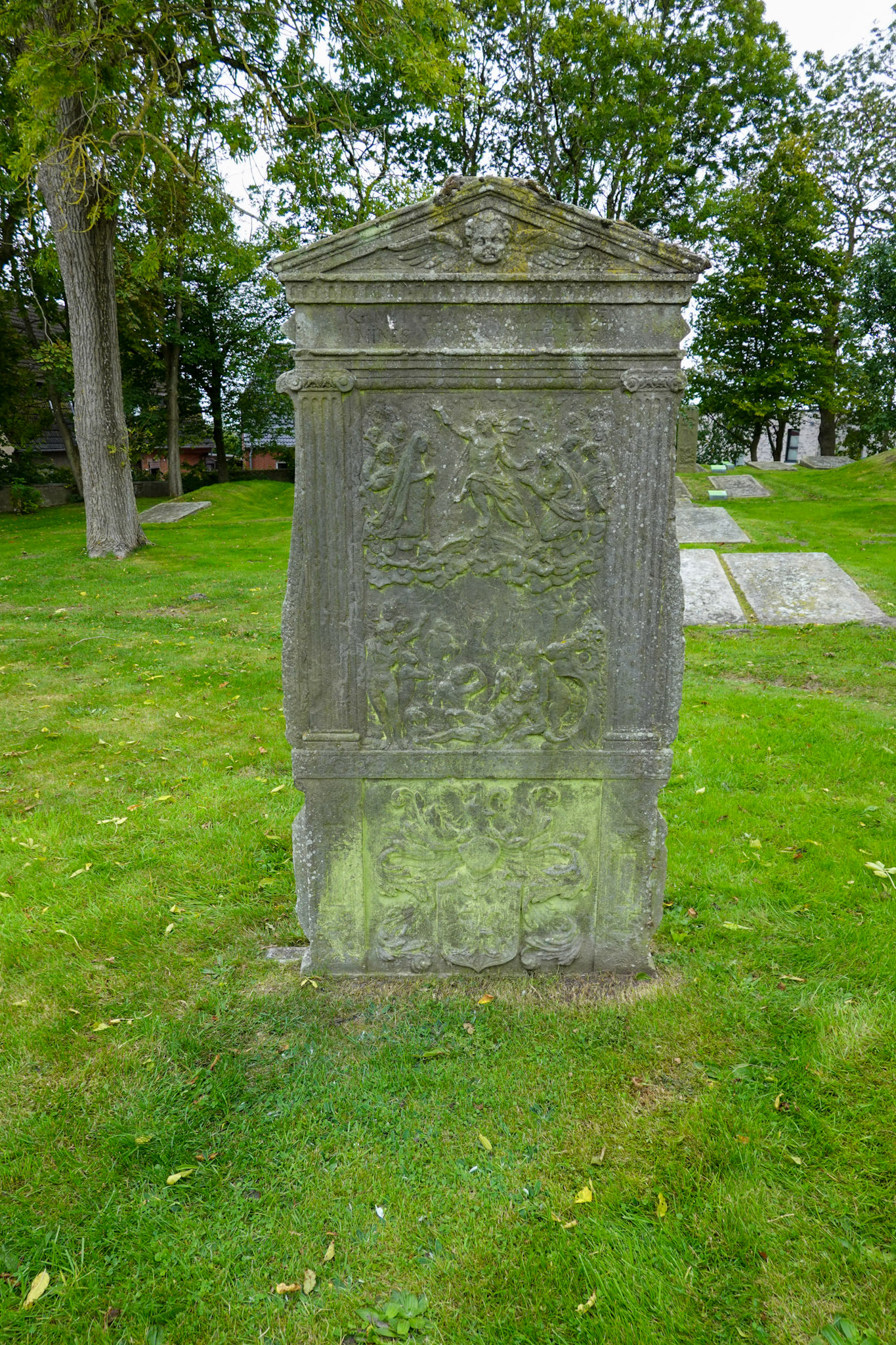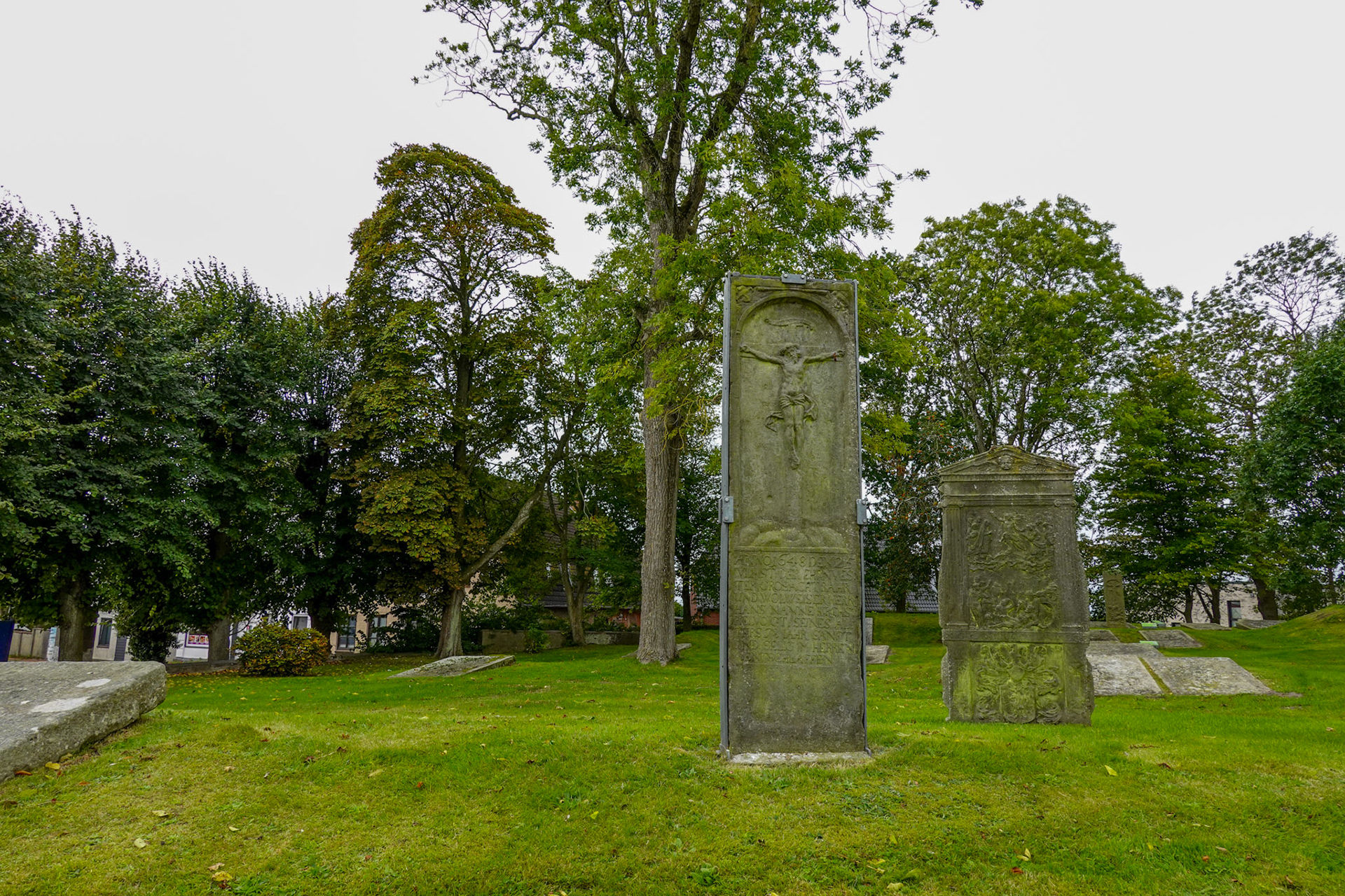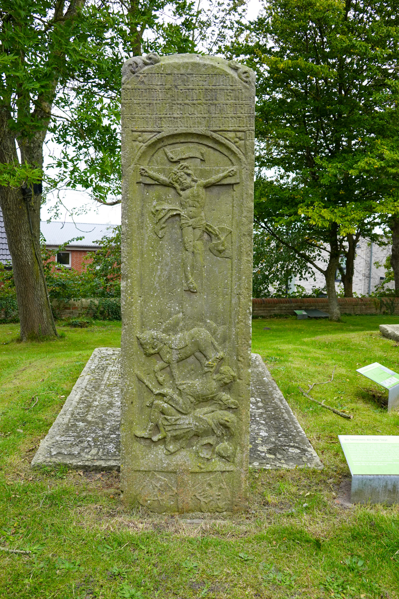 Der Geschlechterfriedhof in Lunden ist ein eindrucksvolles Zeugnis der Dithmarscher Geschichte. Hier ruhen die Verstorbenen reicher, einflussreicher Familienverbände aus dem Lundener Kirchspiel. Die Bestattungen erfolgten u.a. in den überwiegend ost-westlich ausgerichteten Grabkellern. Von den ursprünglichen Gräbernsind 13 erhalten geblieben. In den Kellern wurden die Särge auf parallel gesetzten Ziegelreihen oder auf eisernen Gestellen platziert. Die tonnenförmig gewölbten Grüfte besaßen meist zwei Luftschächte. Die Grabplatten und Stelen wiegen bis zu zwei Tonnen und bestehen größtenteils aus Wesersandstein. Steine und Keller gehörten zu den jeweiligen Häusern oder Höfen und wurden vererbt oder verkauft. Viele Grabsteine folgen einem gleichen Muster: Die vier Ecksymbole Mensch (Matthäus), Löwe (Markus), Stier (Lukas) und Adler (Johannes). Im Zentrum ist ein Engel dargestellt, der in der linken Hand das Manneswappen und in der rechten Hand das Wappen der Frau hält.