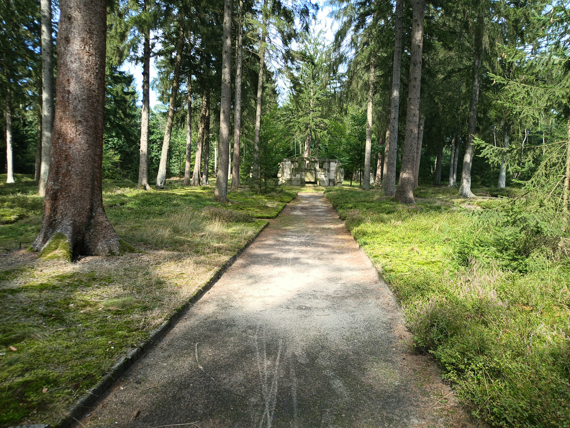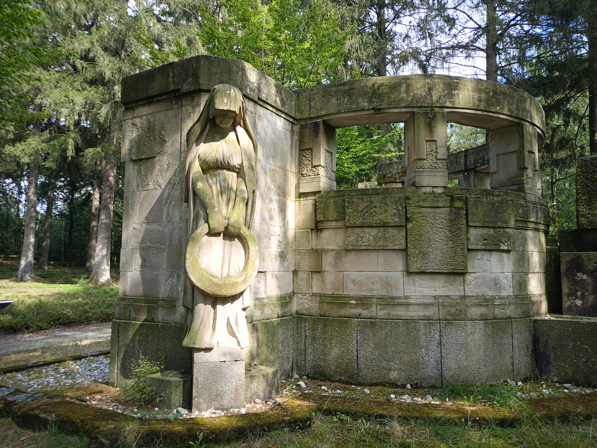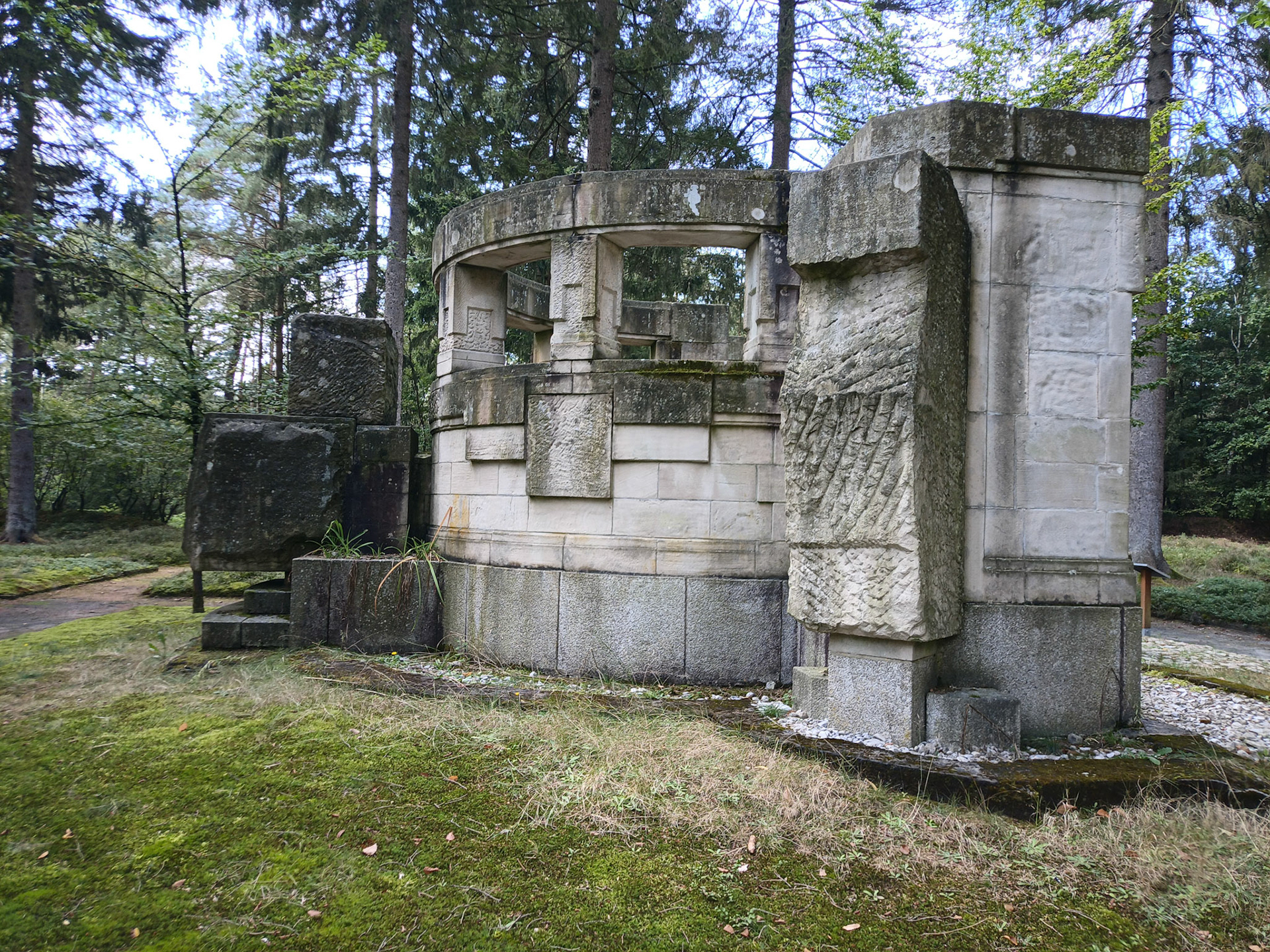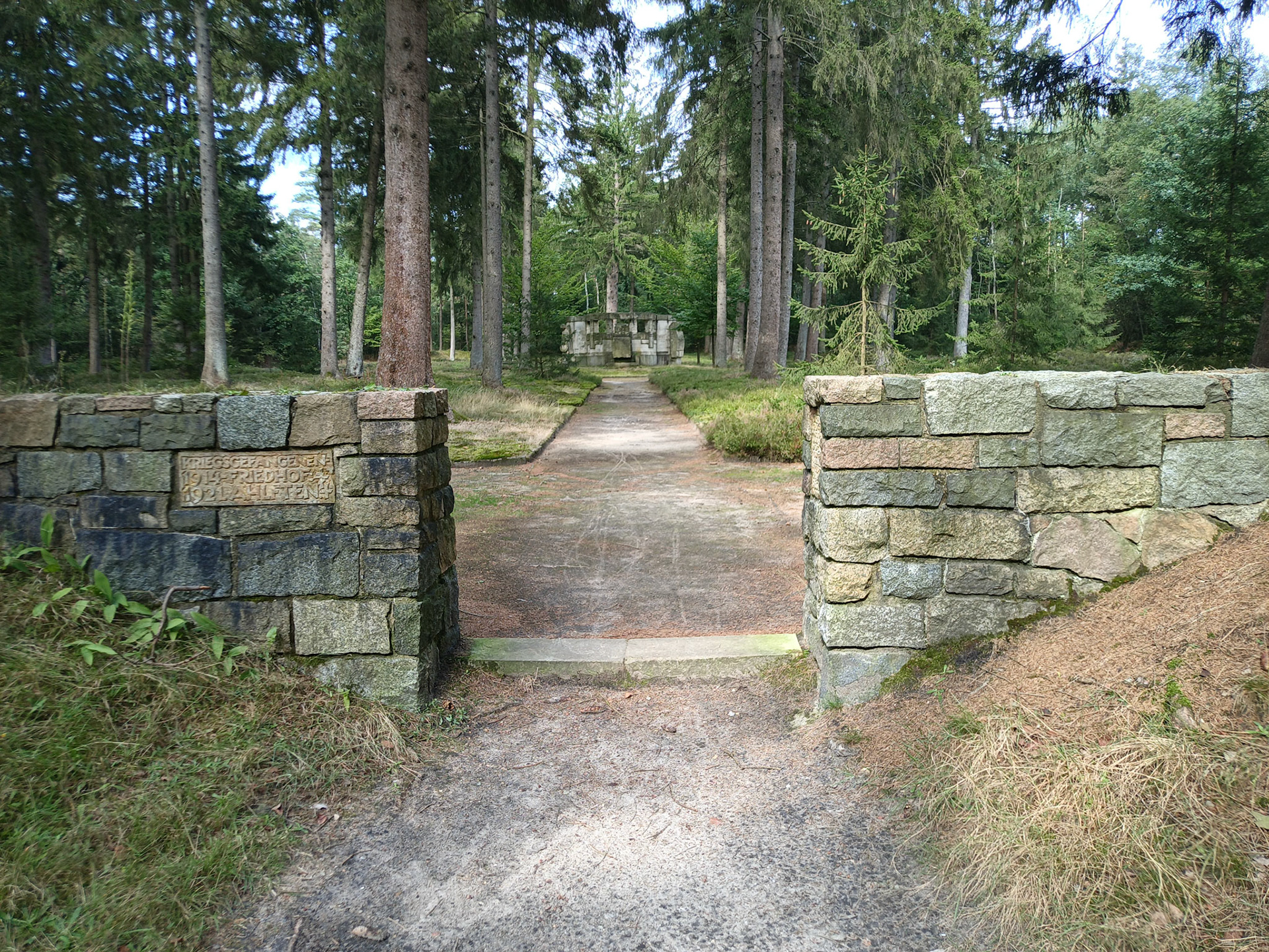 Auf diesem Friedhof in unmittelbarer Nähe des Heideparks Soltau ruhen 859 verstorbene Kriegsgefangene des Ersten Weltkrieges aus dem Kriegsgefangenenlager Soltau aus unterschiedlichen Ländern. Wer hier begraben ist und wann sie gestorben sind, ist nicht bekannt, Namen wurden nicht vermerkt. Das Lager Soltau war das größte Kriegsgefangenenlager in Deutschland und wurde 1915 bezugsfertig. In ihm waren bis zu 80 000 Kriegsgefangene interniert, hauptsächlich Franzosen, Serben, Belgier und Russen. Das Denkmal wurde von dem Belgischen Bildhauer Gerard Victor de Bondt noch während des Krieges als Kriegsgefangener begonnen, weigerte sich aber, es nach Kriegsende fertig zu stellen. So sieht man auf der linken Seite eine Frau und auf der rechten nur einen Block.