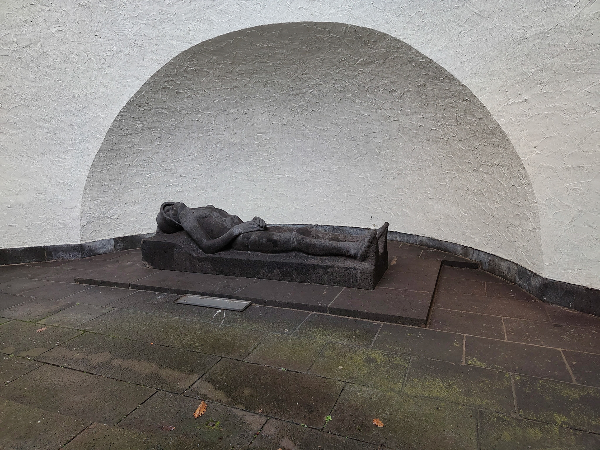 Verlässt man das Ehrenmal, führt links ein Weg zum Gräberfeld für die Opfer der nationalsozialistischen Gewaltherrschaft und die Skulptur des "Hiob" aus Bronze, geschaffen durch den Bildhauer Gerhard Marcks ist vom weiten sichtbar.