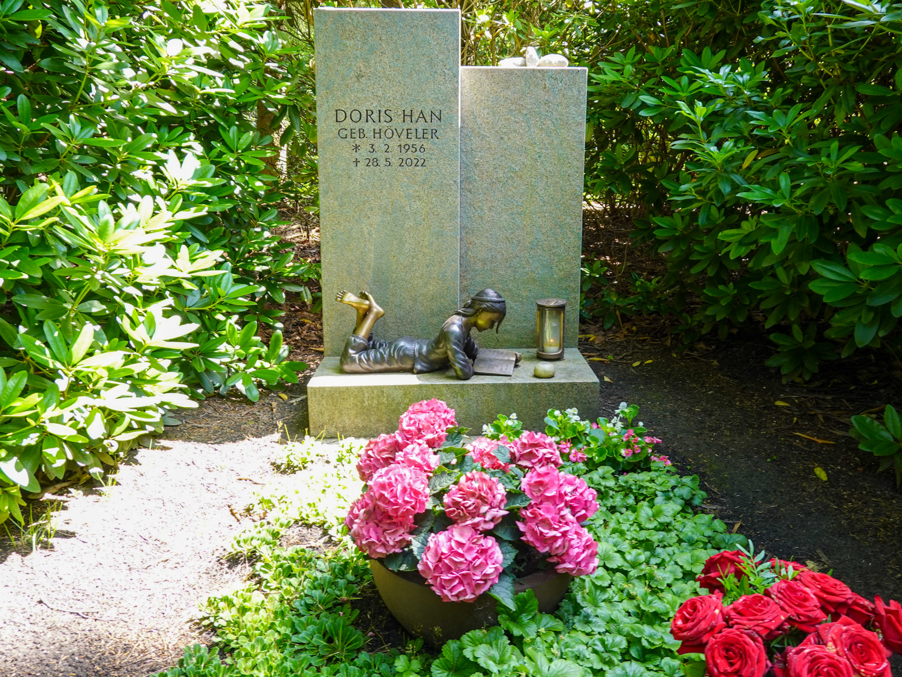 Die kleine Lesende auf dem Ohlsdorfer Friedhof und der Hintergrund meines Logos