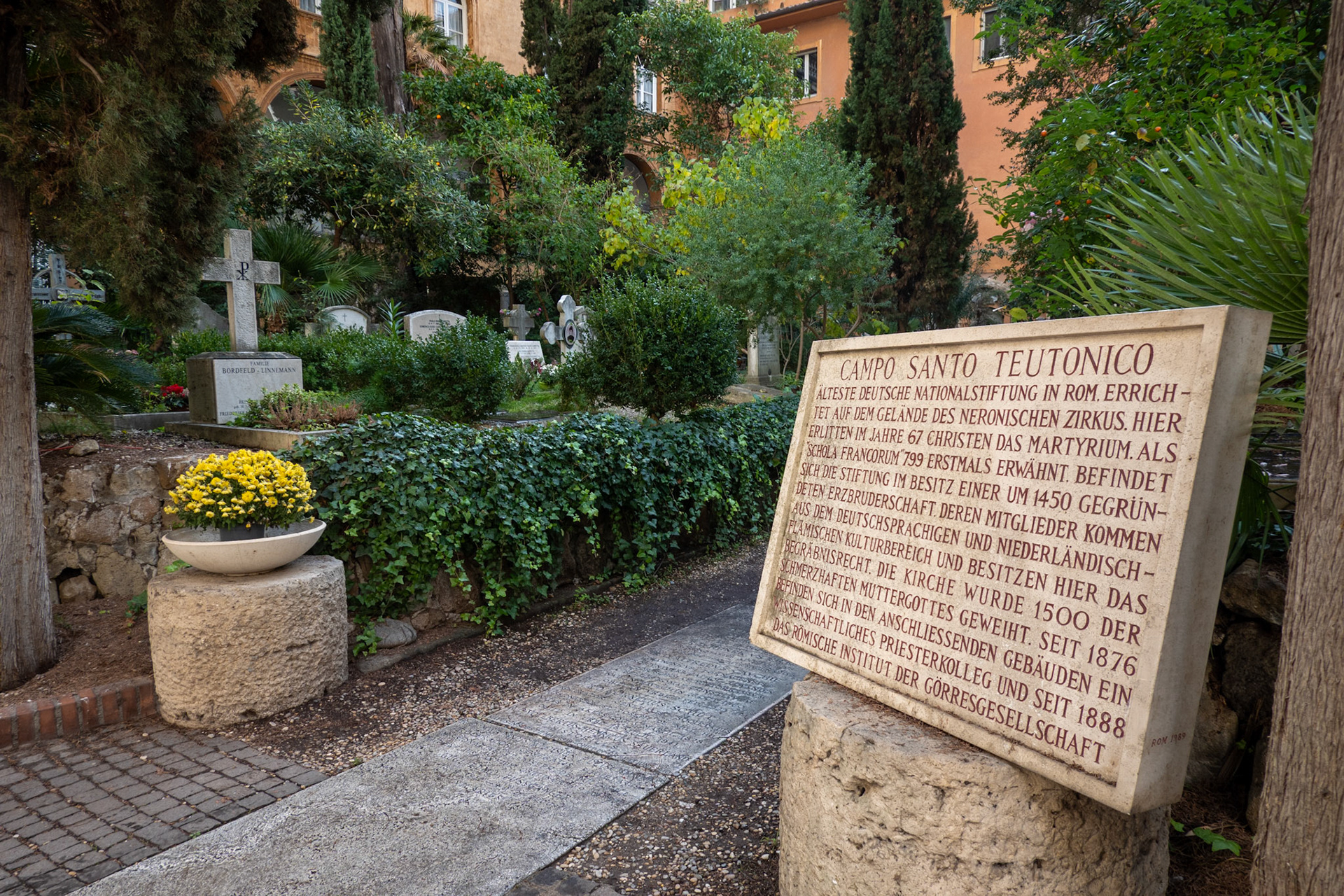 Der Deutsche Friedhof im Vatikan, offiziell "Campo Santo dei Teutonici e dei Fiamminghi", eigentlich der deutschsprachigen Länder und der Flamen, liegt direkt neben dem Petersdom und eigentlich innerhalb Vatikanischer Mauern, gehört aber zum italienischen Staatsgebiet. Der Zugang ist trotzdem nur über vatikanisches Territorium möglich. Der Friedhof ist vollständig von Mauern umschlossenen und gehört zur Kirche Santa Maria della Pietà, Sitz der Erzbruderschaft zur schmerzenhaften Muttergottes (Mater Dolorosa) der Deutschen und Flamen.