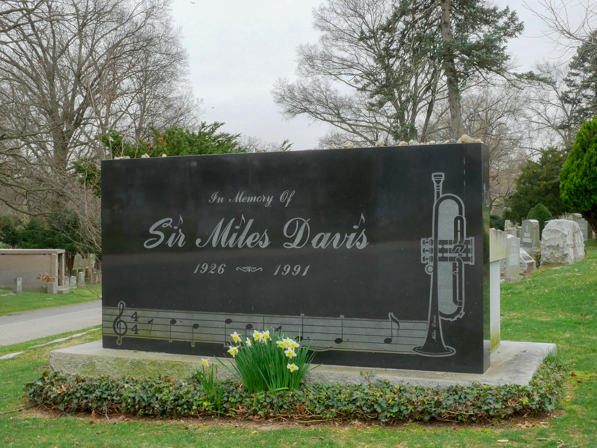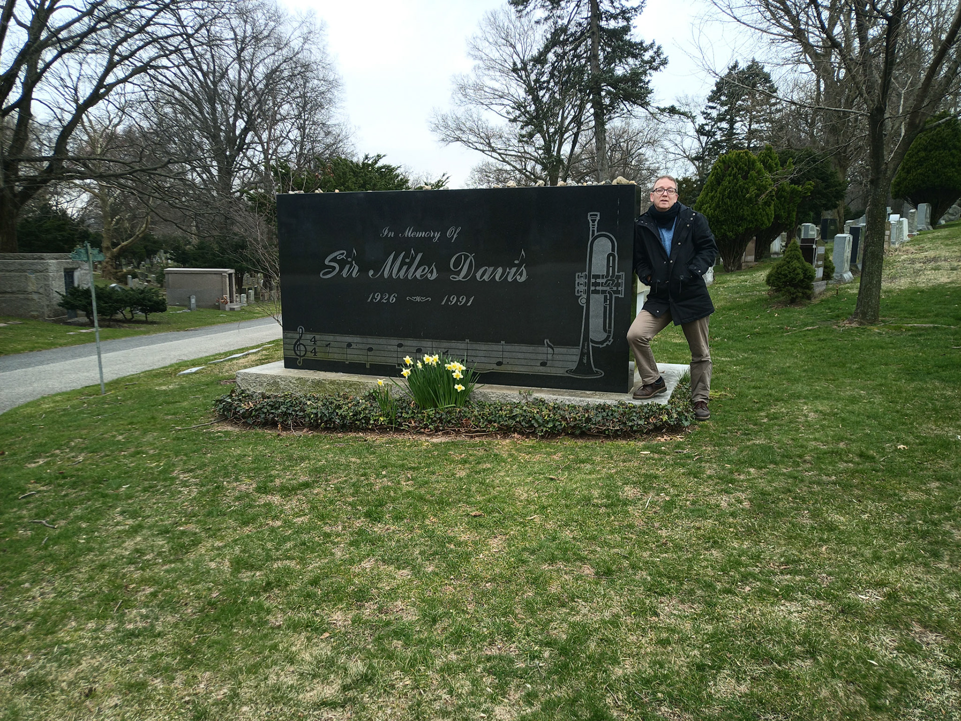 Wir steigen ins Auto und fahren los, ich dirigiere J., was gar nicht so einfach ist. Nach ein paar Minuten sind wir da, das opulente Grabmal von Miles Davis ist schon von weitem zu sehen.