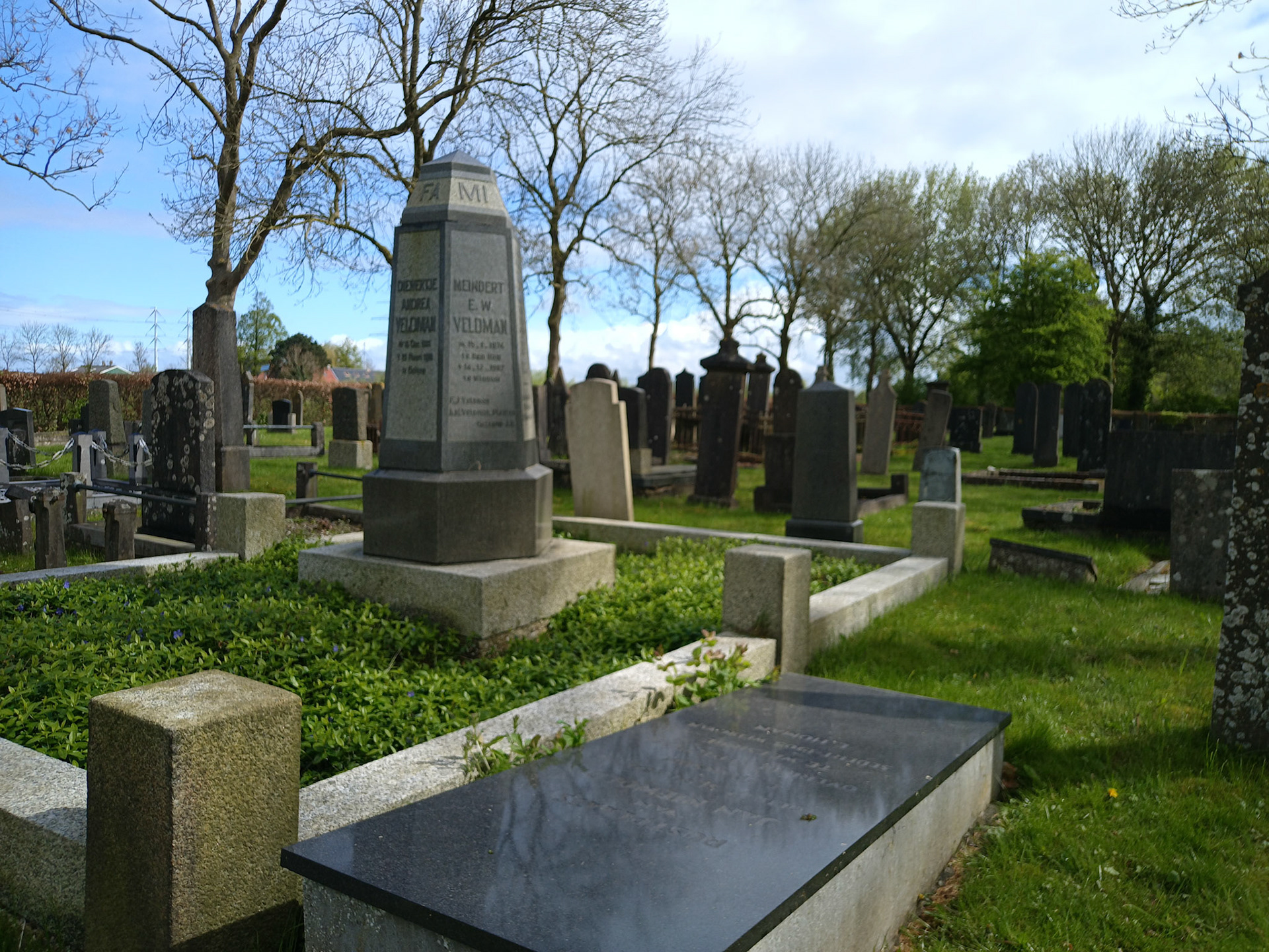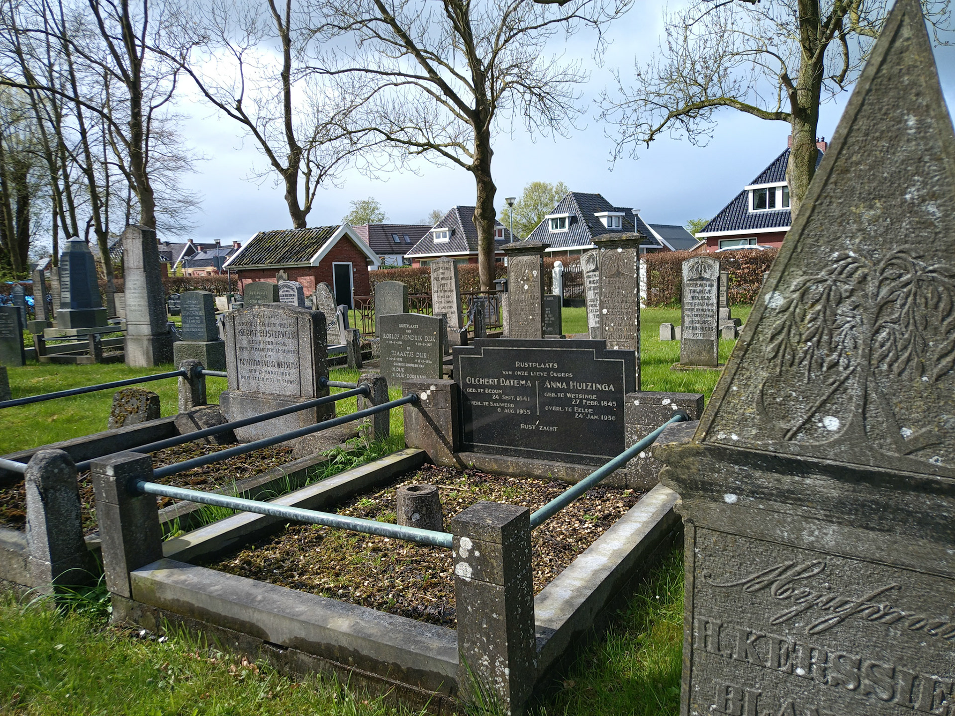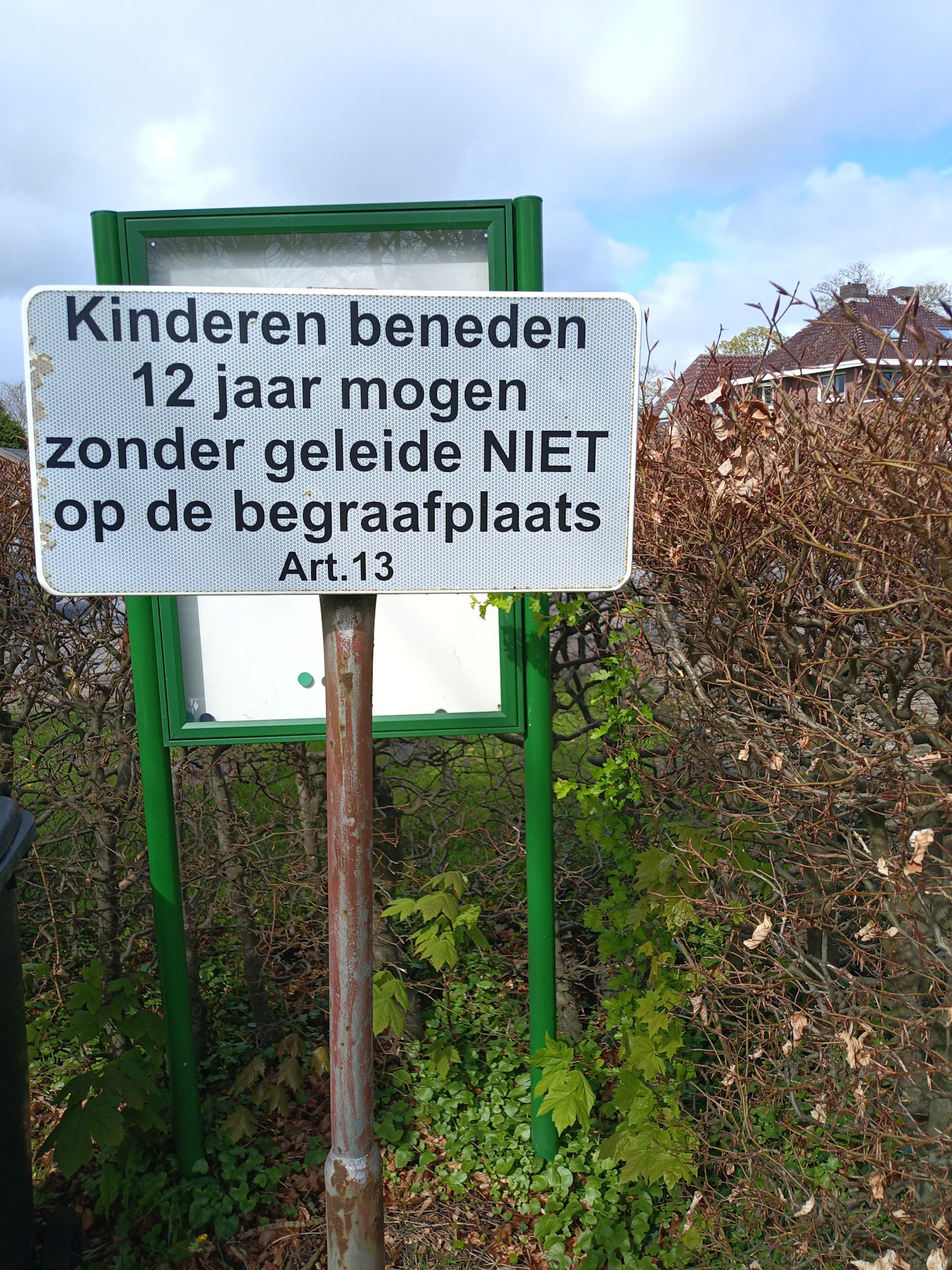 Der "Alte Friedhof" Sauwerd in der Nähe von Groningen ist nicht mehr aktiv, hat aber viele alte Gräber bis zum 2. Weltkrieg. Das Schild am Eingang weist darauf hin, dass Kinder unter 12 Jahren nur in Begleitung ihrer Eltern auf den Friedhof dürfen.