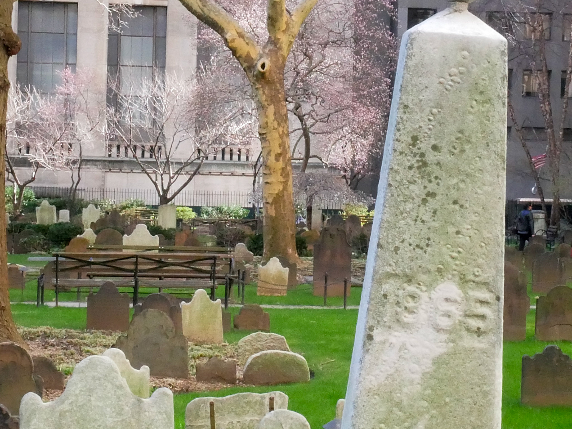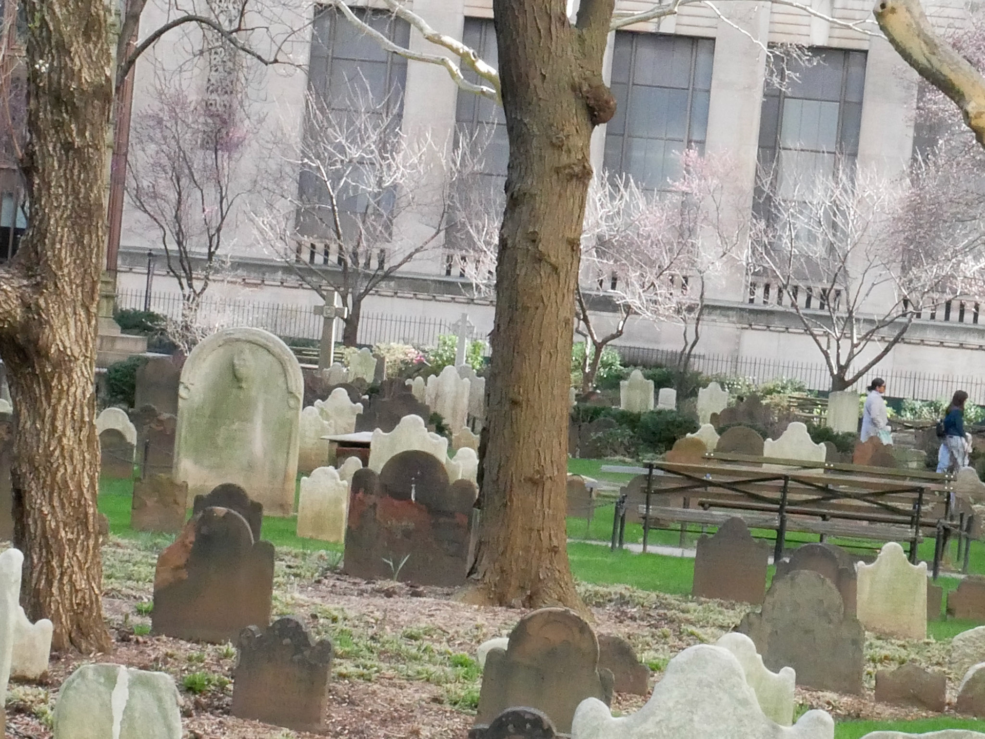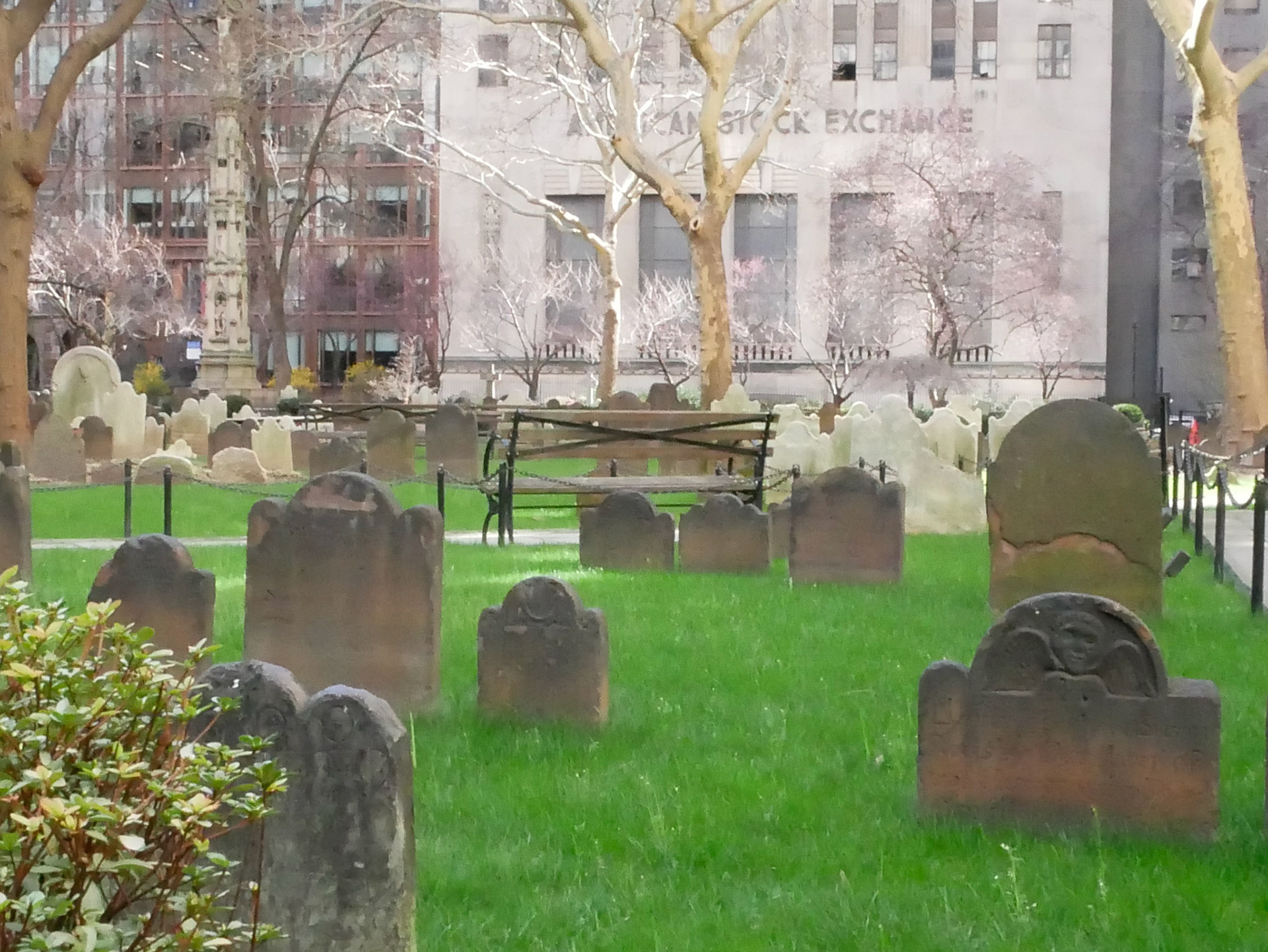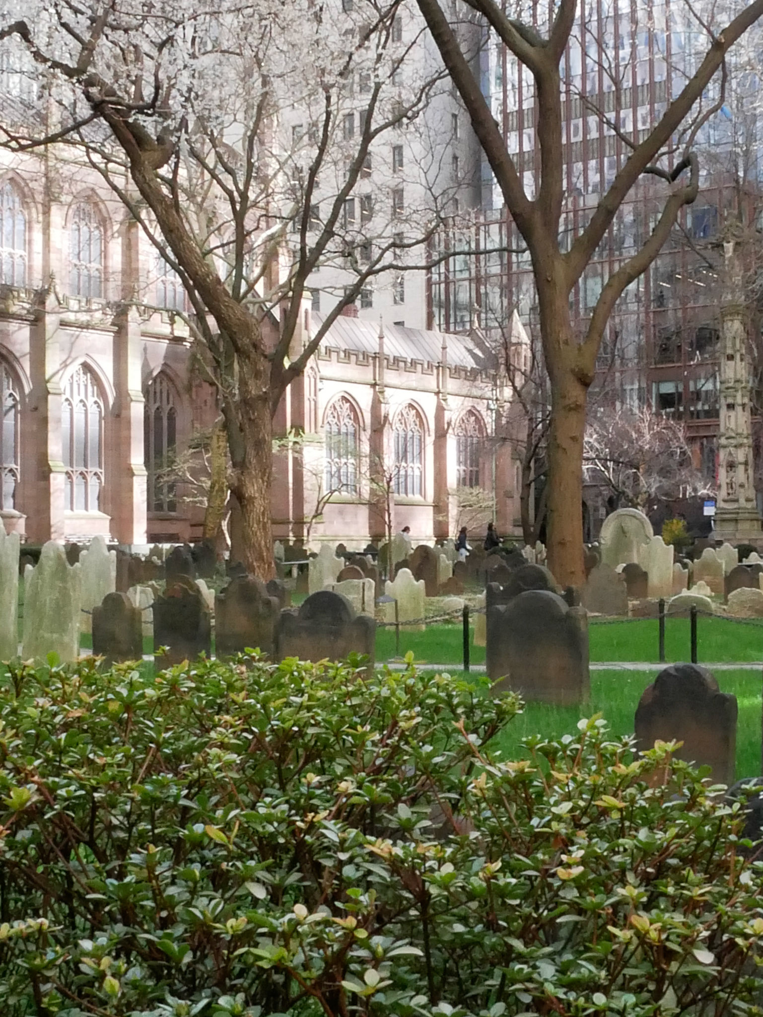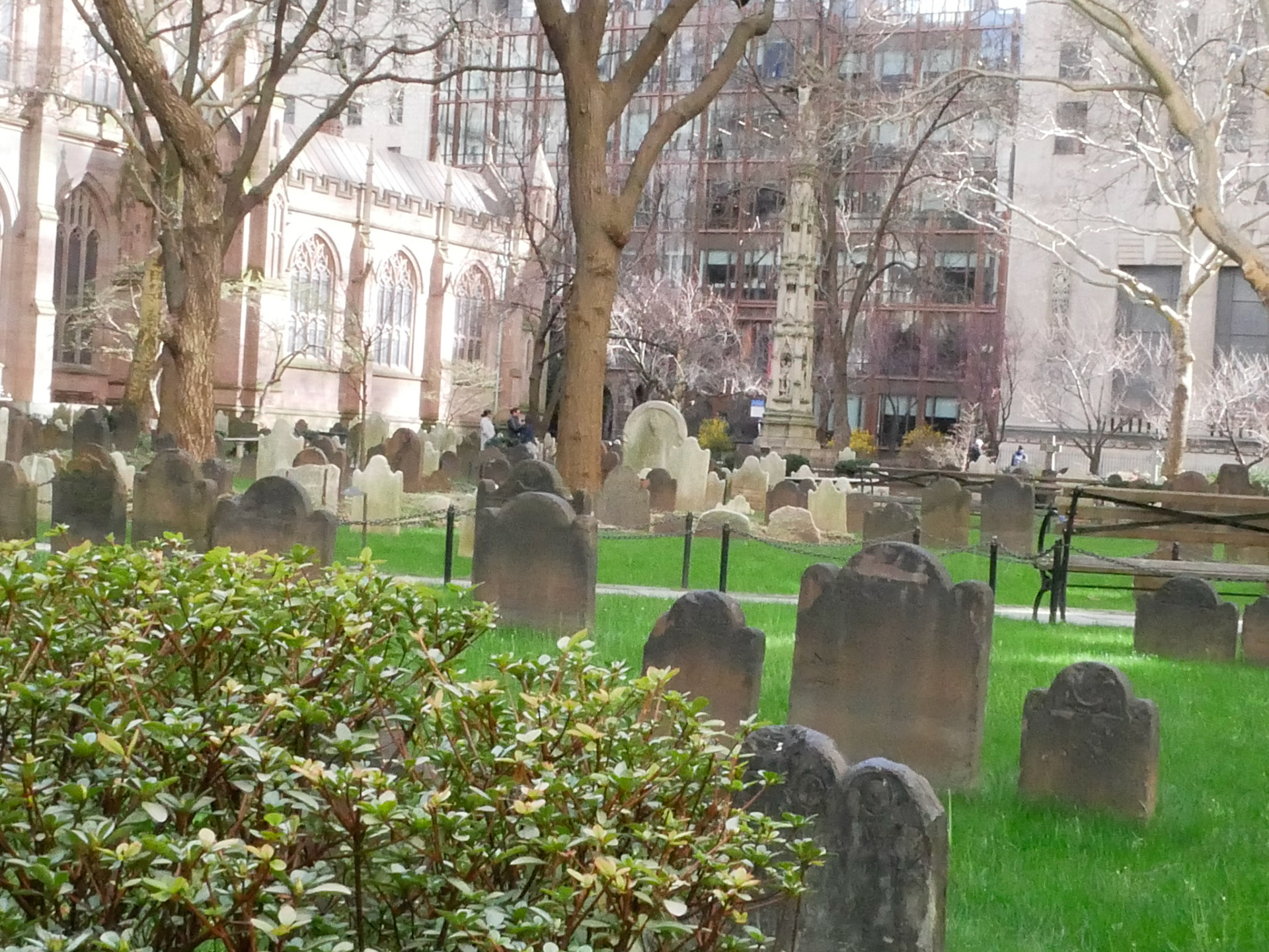 Mitten im Financial Destrict in Manhatten, Ecke Broadway und Wall Street, steht die Trinity Church, umgeben von einem Friedhof, wo u.a. Alexander Hamilton, einer der Gründerväter der USA begraben liegt.